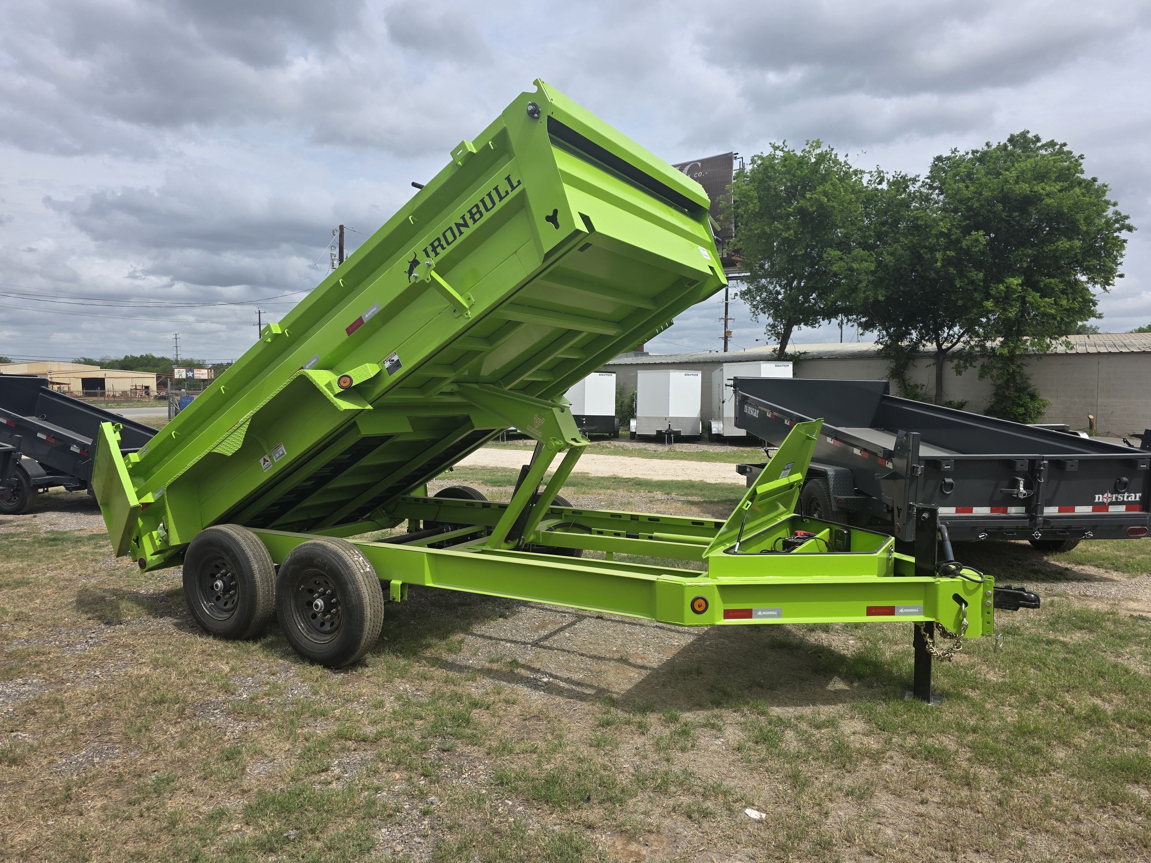 2026 Norstar 7 x 14 x 2 Iron Bull DWB Bumper Pull Dump, Low-Pro, 8in I-Beam Frame, Tarp, Scissor, Ramps, 7ga Fl. (Neon Safety Green) - 3EUDB142XT1106235